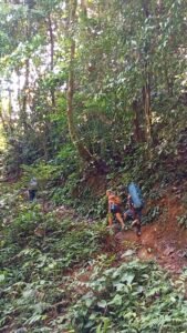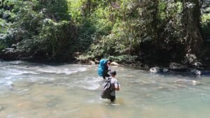 Setibanya di Desa Koala Lapang, perjalanan dilanjutkan dengan berjalan kaki menuju Desa Rian Tubu. Jalur yang dilalui tidak kalah berat, sejauh kurang lebih 10 KM tim sering melintasi sungai berarus kuat denganbebatuan yang licin di dasarnya, tak jarang juga mendaki dan menuruni perbukitan yang terjal, ditambah membawa beban logistik di punggung. Perjalanan ini menjadi gambaran nyata bahwa menjaga hutan bukan sekadar tugas administratif, melainkan kerja lapangan yang menuntut fisik, mental, dan ketahanan yang tinggi.